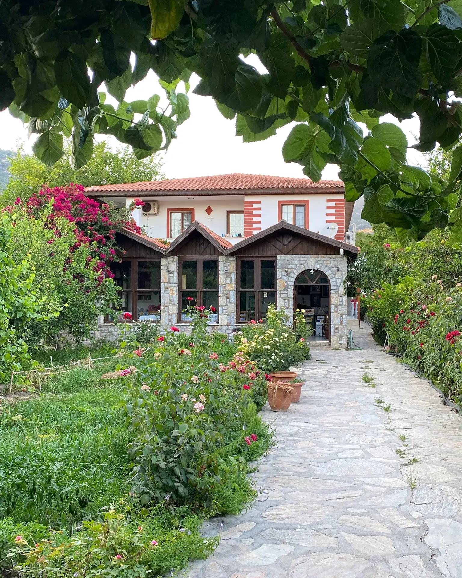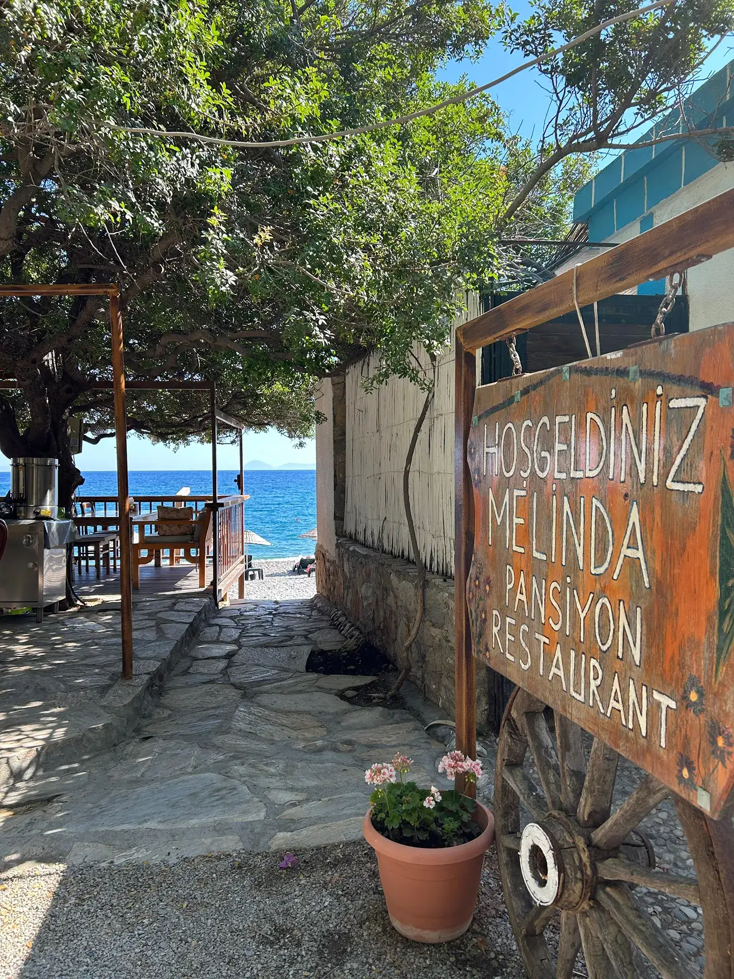 A Small Hotel that has adopted the spacious, calm and peaceful atmosphere of Ovabükü bay of Mesudiye village on the Mediterranean side of Datça peninsula. At the western end of Ovabükü, in flower-scented gardens, on the seafront, the family-run pension has been trying to provide the highest quality service since 2004. You can enjoy a sparkling sea and a magical nature with a wide variety of open buffet organic village breakfasts as well as delicious foods that accompany hot, cold and alcoho lic beverages throughout the day. The restaurant's kitchen is ambitious in terms of hygiene and flavor. The organic vegetable garden adds a special joy to your holiday with healthy flavors. Pension They host their guests in a total of 11 extremely comfortable rooms for 2 and 3 persons, all of which were completely renovated in 2014, with the option of bed and breakfast service. They can also add a child bed to their rooms if needed. All rooms have air conditioning, wi-fi internet, hair dryer, towels and 24-hour hot water as standard, television and refrigerator are not available. For guests who want to watch television, there is also a common television area in the lobby lounge. In your room furnished in authentic Mediterranean style in accordance with the region, you will find a cozy balcony where you will breathe the fresh air with the scent of nature and sea, and enjoy the view of the nature of Datça or Ovabükü coast. Restaurant: You will find the most distinguished flavors of local Mediterranean and Aegean cuisine in the menu carefully prepared by combining vegetables grown in their organic gardens with the freshest seafood and meat products. In the mornings between 08:00 - 10:30, you can start the day with a smile amidst the sounds of birds singing by taking the most exquisite cheese and butter, the best olives, village breads from the oven, homemade organic jams, the most organic tomatoes, cucumbers and peppers to your table at your open buffet breakfast with rich local and organic flavors. A variety of appetizing snacks, naturally prepared olive oil dishes, carefully prepared rich appetizers, fresh salads, meat menu and especially octopus, calamari, shrimp, other seafood and expertly prepared sea fish, which turn into a feast of flavor in skilled hands, are ready to welcome you at any time of the day and at dinner. You can connect to the wireless Internet from both the beach and the lobby of the restaurant without any problem. Since the cuisine is one of the most appreciated in the area for its hygiene and taste, we recommend that those who want to taste the organic open buffet village breakfasts, sip their drinks with a pleasant variety of flavors for lunch and afternoon, or be guests at the fish or meat tables for dinner, should make a reservation in advance. Raki and fish by the sea. Of course with carefully prepared seasonal olive oil dishes, grilled octopus and salad, calamari, Ezine feta cheese and melon. On request, if ordered in advance, they can also prepare special delicacies for groups, such as tandoori prepared in a stone oven.