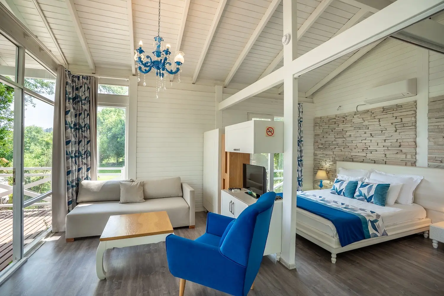 It is a place that serves your holiday purpose with its nature and tranquility, especially at the end of the season. The architectural structure of the rooms makes you feel comfortable. The staff is friendly and disciplined, but food and drinks are expensive, above the real price.